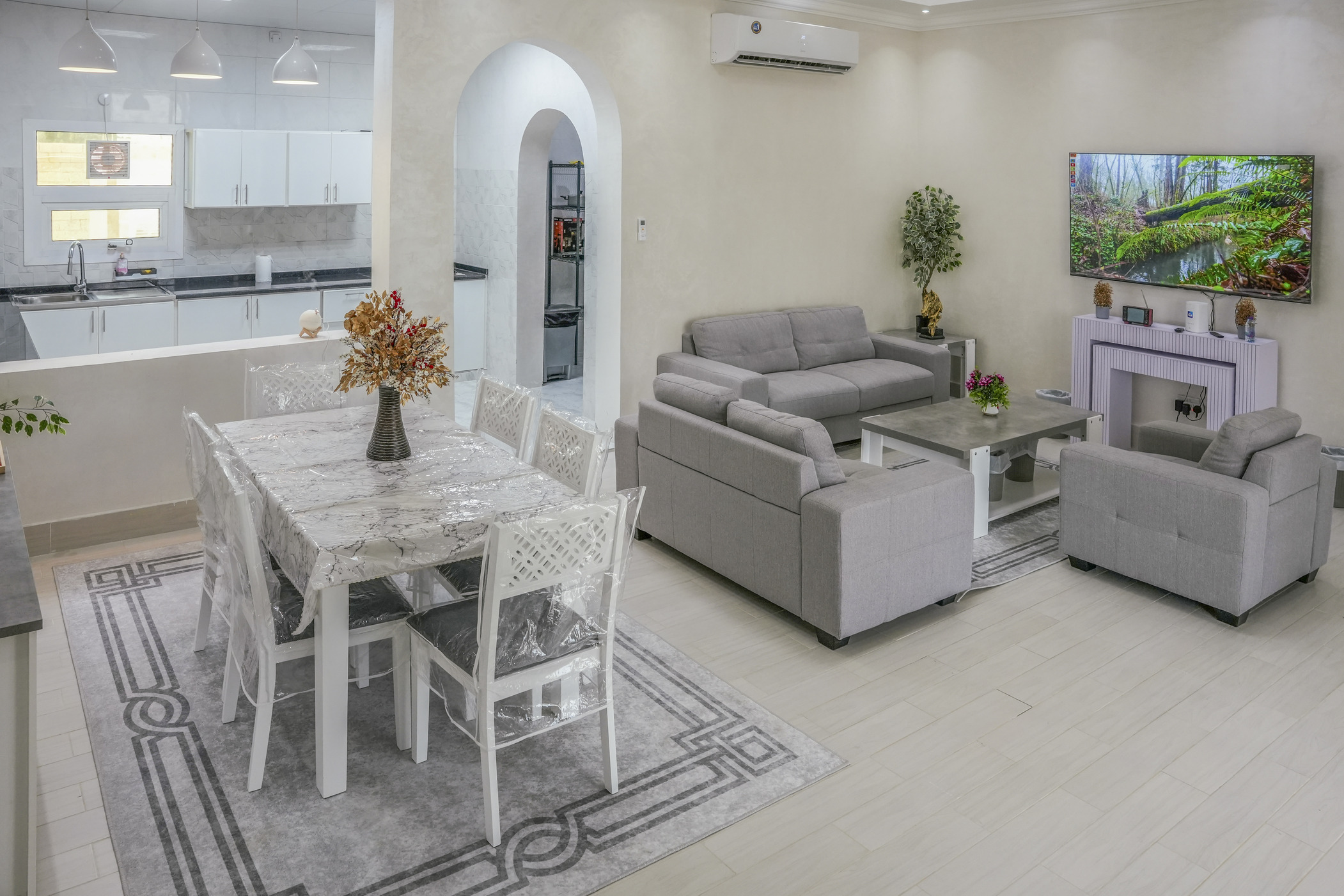 Welcome to Aljoori, a delightful property comprising two charming sections, each designed to provide you and your loved ones with a comfortable and spacious retreat. The first features three bedrooms, One kitchens, two bathrooms, and a living room. The second section, It contains a living room"’Majlis", a kitchen, and a bathroom, ensuring ample space for your enjoyment. In total, Aljoori comfortably sleeps 10 to 12 guests.