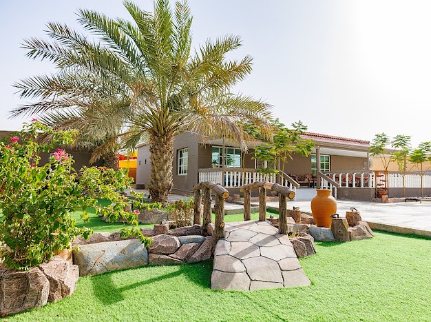 Alnakhil Farm, situated in Al Khatim, Abu Dhabi, operates as a fully functional horse stable, showcasing a diverse array of animals including ostriches, deer, gazelles, and a vast bird aviary housing hundreds of birds. The farm is not only an animal enthusiast's but also caters to families with a dedicated children's play area. A generously sized swimming pool is the centerpiece, surrounded by a meticulously maintained and landscaped garden.