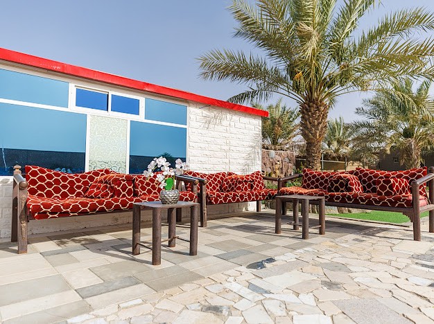The interior of Alnakhil Farm is equally impressive, featuring a spacious living room equipped with an 85-inch TV screen to keep you and your guests entertained. The farm offers four large bedrooms, ensuring ample comfort for a restful stay.