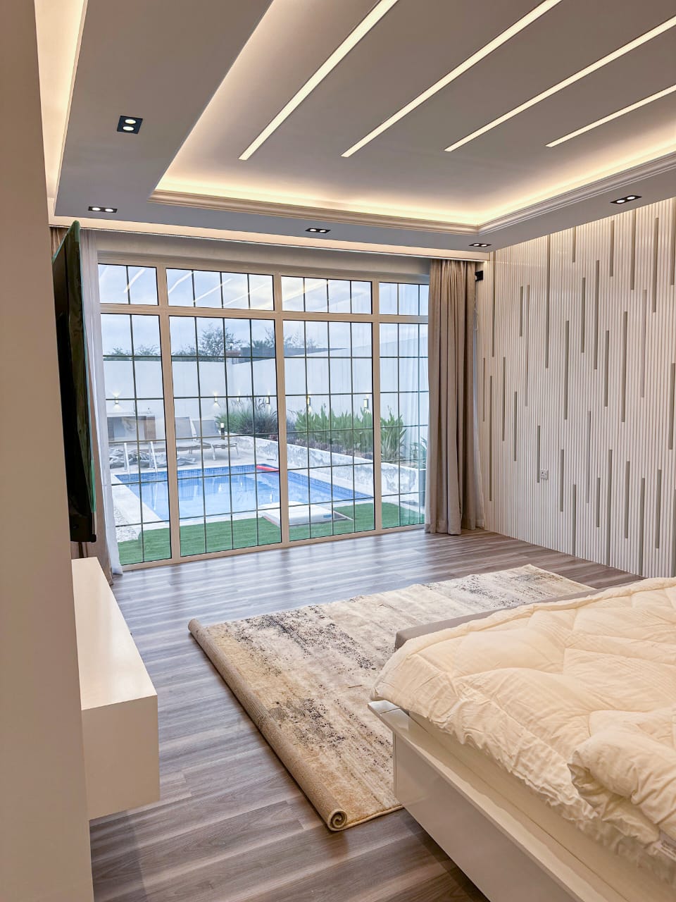 Welcome to Alobaidly Farm, a delightful one-bedroom retreat nestled in Al Shahama, Abu Dhabi. This modern villa offers a cozy escape, featuring a serene swimming pool and a private garden and BBQ area for your enjoyment.