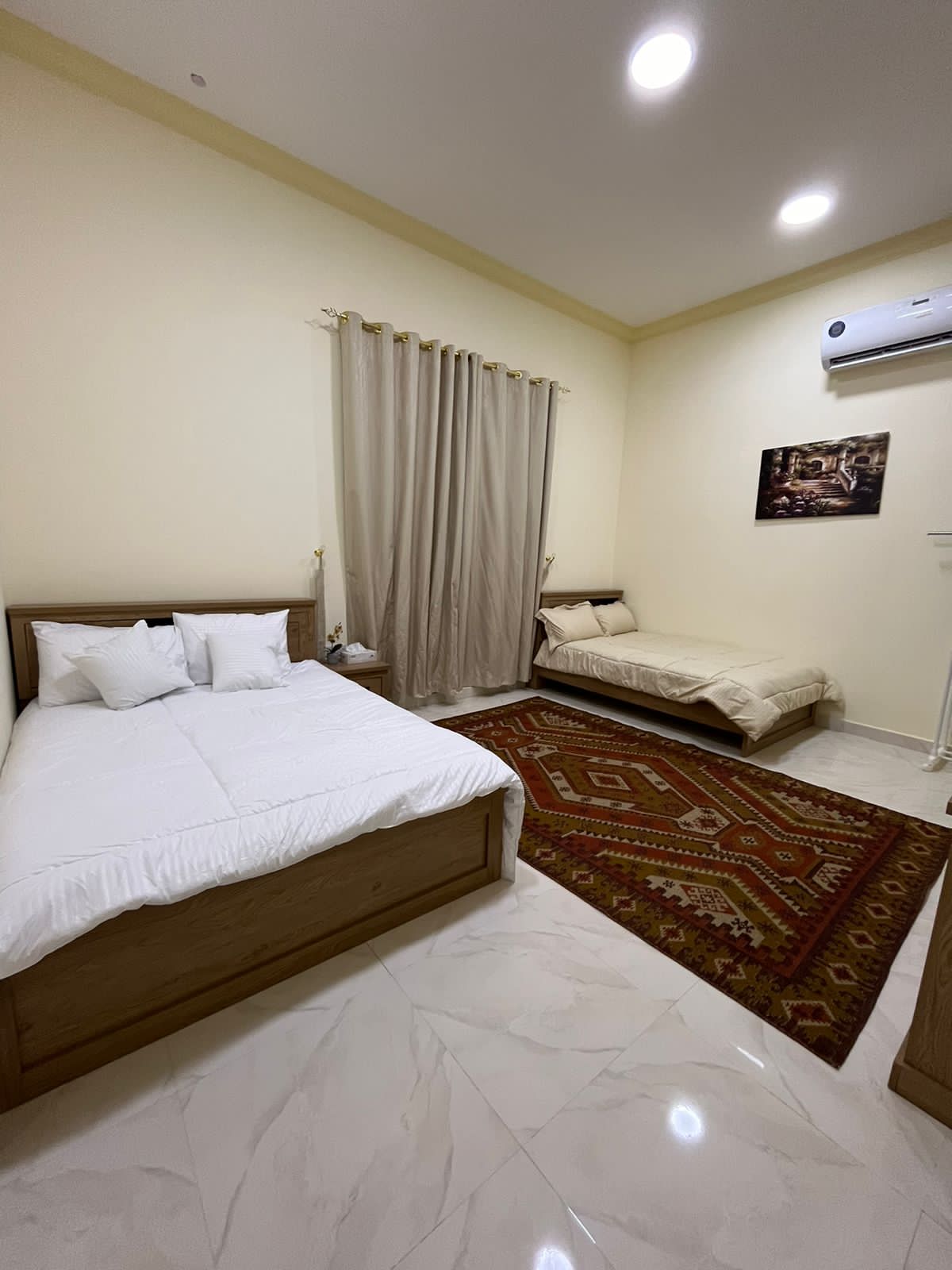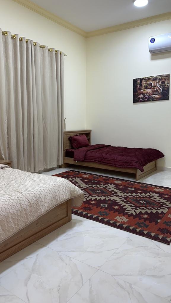 As you explore the outdoor space, you'll find charming water fountain and a carefully crafted artificial stream that meanders through the courtyard. Families with children will appreciate the dedicated kids' play area, which includes a small football court, two comfortable shaded seating area for relaxation. Alroudha Lodge offers a complete and serene escape for guests seeking the perfect blend of luxury and natural beauty.