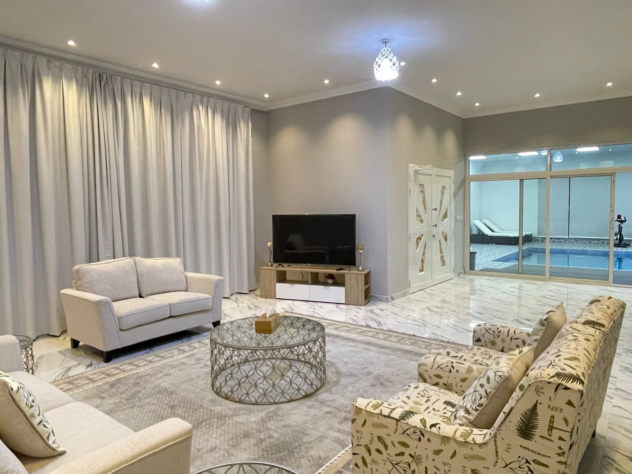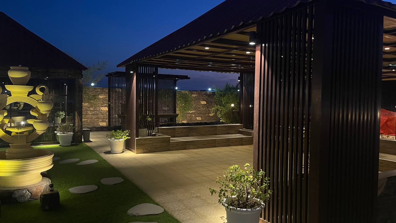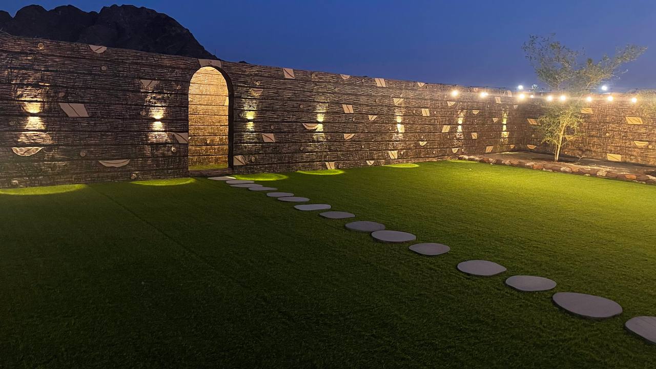 Located within the scenic Hatta region, Elva Farm is a distinguished 4-bedroom residence, featuring three master bedrooms for a comfortable stay. Resting in a mountainous valley, the property offers sweeping panoramic views of the surrounding hillsides. Its extensive outdoor grounds, adorned with four outdoor majlis areas that frame breathtaking mountain views, set an enchanting stage for celebrations and gatherings.