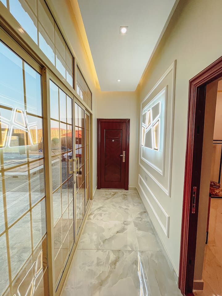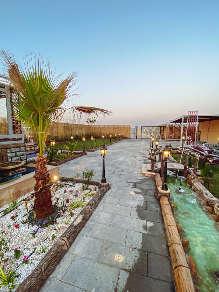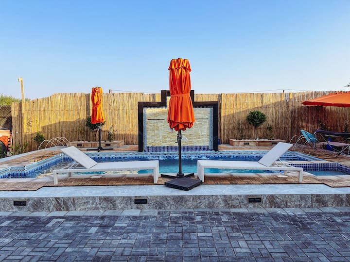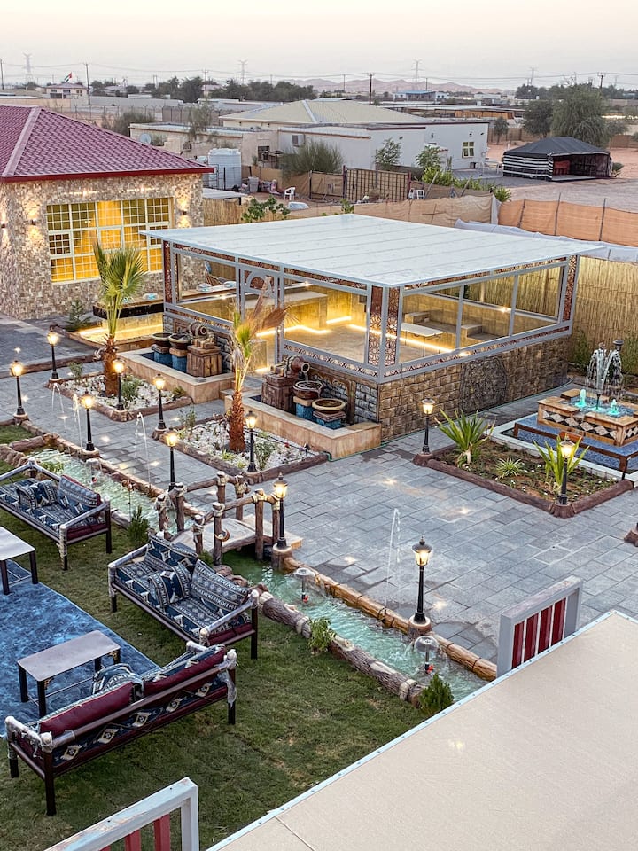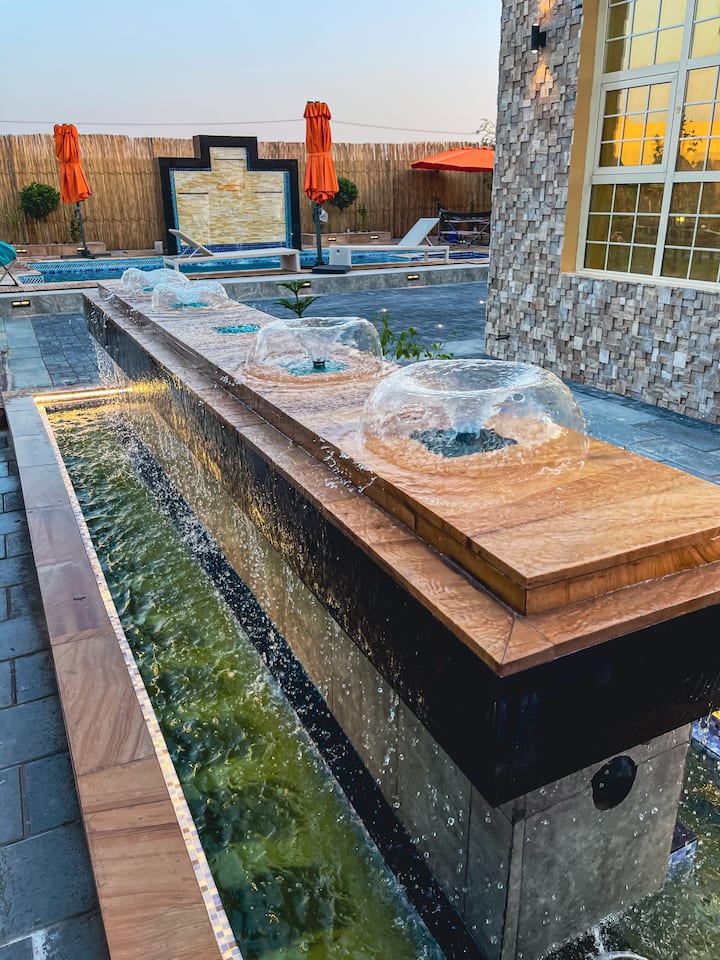 Discover Oasis Resort in Al Ain, a delightful 3-bedroom property with a lot to offer. As you step outside, you'll be greeted by a beautifully landscaped garden with several water displays and three separate outdoor seating areas, allowing you to enjoy the sounds of the man-made river surrounding the property. A spacious pool, accompanied by a sun deck, invites you to unwind and relax.
