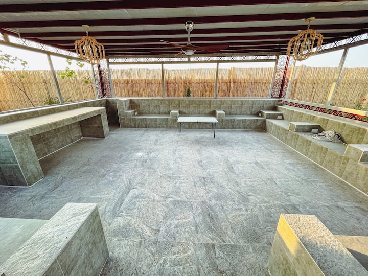 For those who enjoy culinary delights, a fully equipped BBQ station awaits, having three barbecues and a tandoor, perfect for hosting dinner parties and creating feasts for your loved ones.