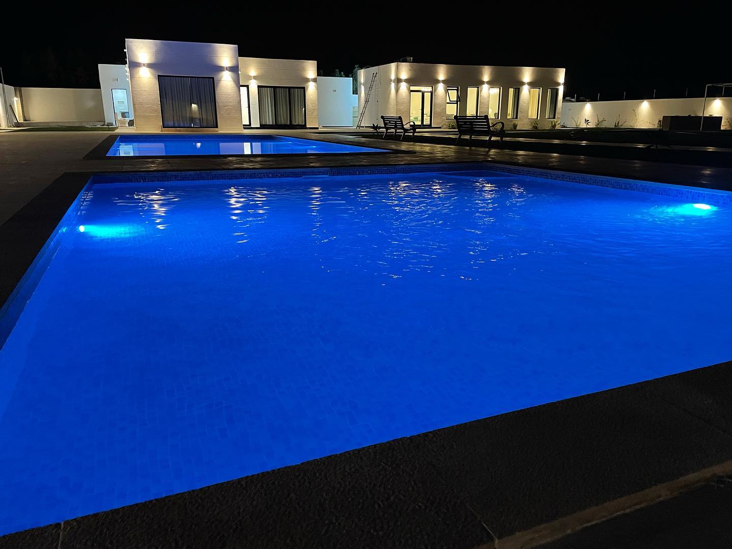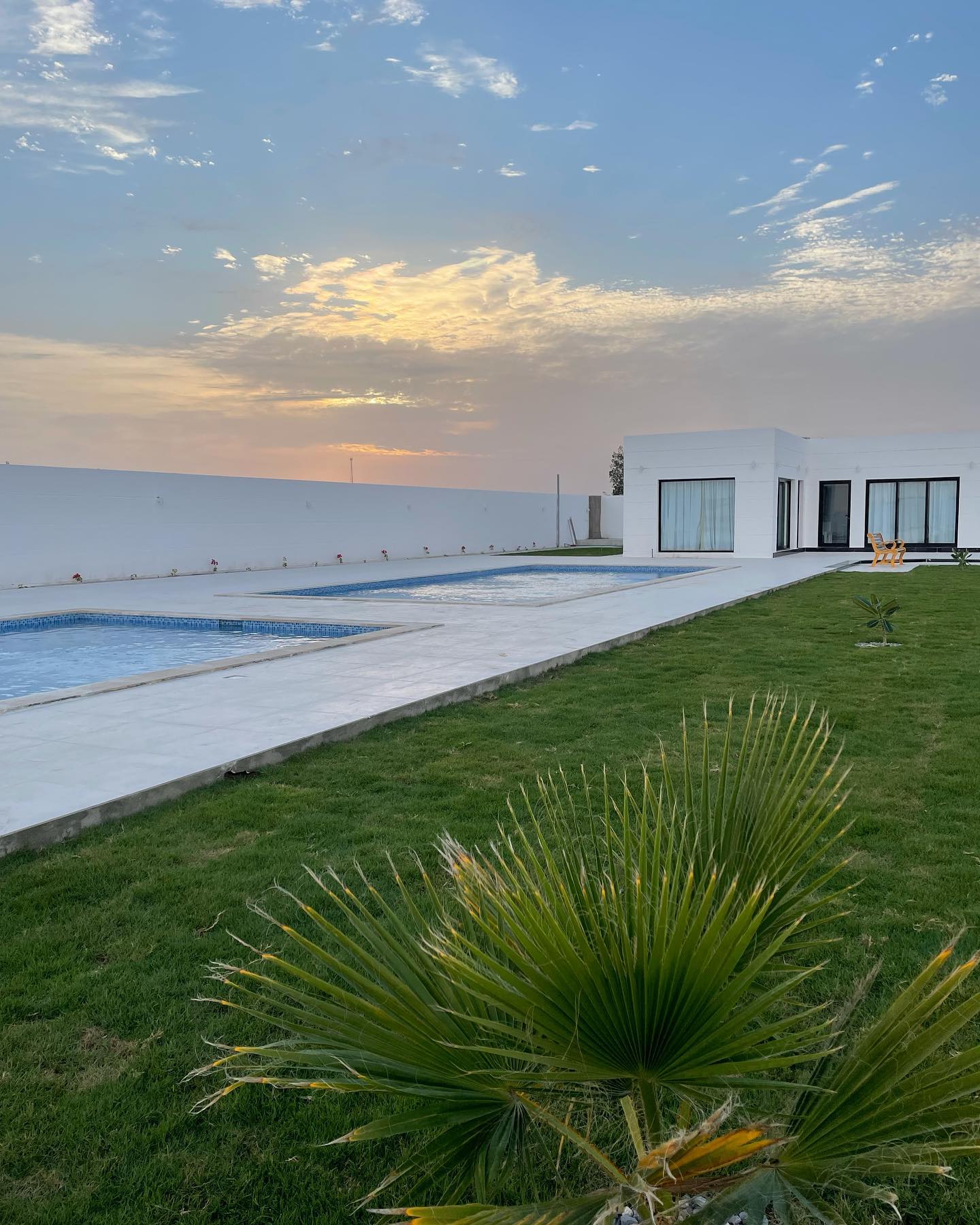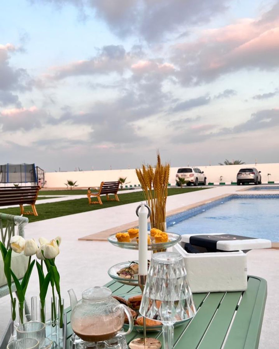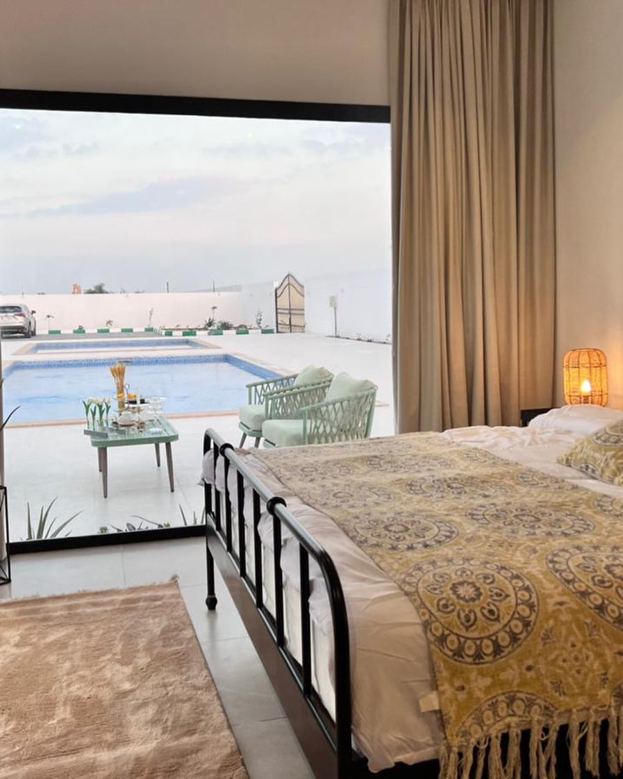 The Royal Farm in Al Khaitm provides stunning views of sand dunes. The property includes a dedicated children's play area and two separate swimming pools for guests and residents. The extensive grounds are covered with artificial grass. There are additional seating areas for relaxation, along with a BBQ area. Each bedroom offers direct, uninterrupted views of the swimming pool. The residence also features a generously proportioned majlis, a fully fitted kitchen, two master bedrooms, and a maid's room for residents to unwind and entertain in style.