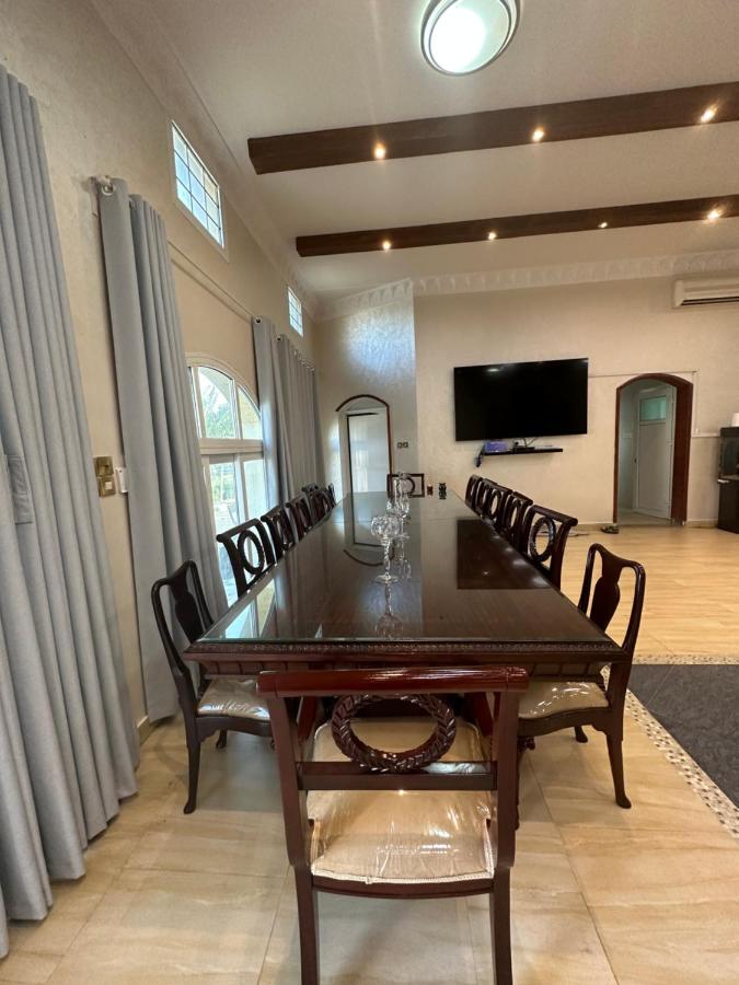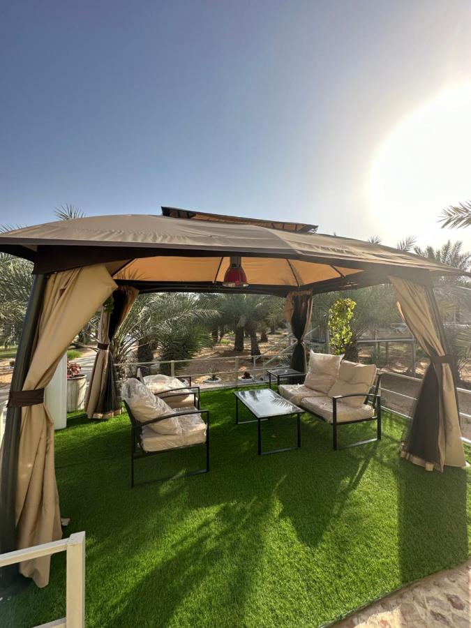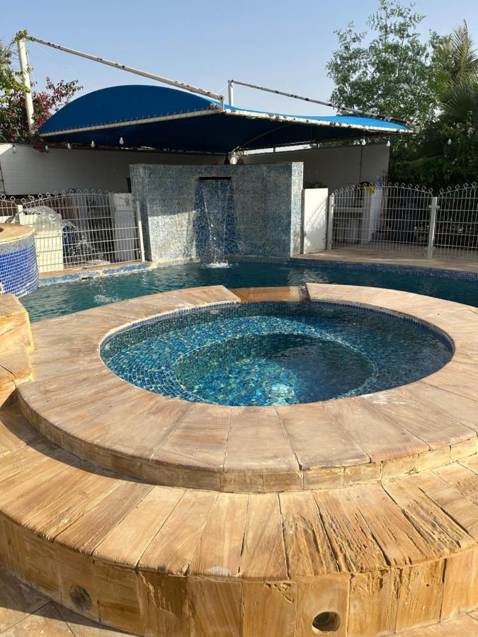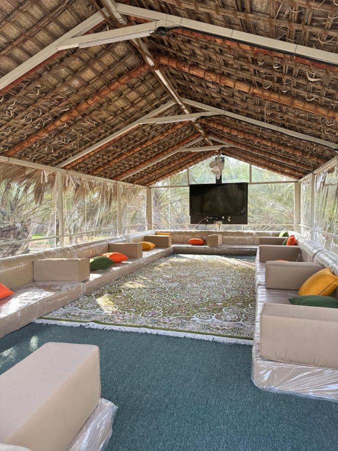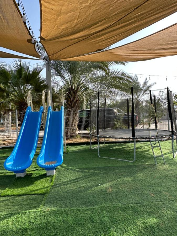 Alzubair Oasis Resort stands as a delightful farmhouse featuring four generously sized bedrooms, all offering picturesque views of the central courtyard and the inviting pool. The property has an expansive layout, providing ample outdoor spaces for you and your loved ones to relish. Step into the outdoor haven, where two inviting swimming pools await—one for adults and another for the little ones. The dedicated outdoor play area, complete with a bounce castle, ensures endless fun for the children. Sports enthusiasts can partake in friendly matches at the Cricket/Football Ground or enjoy a game of volleyball.